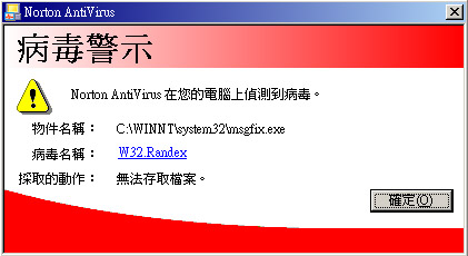 附加檔為鄰居電腦遭攻擊時,norton所發出的警示訊息;