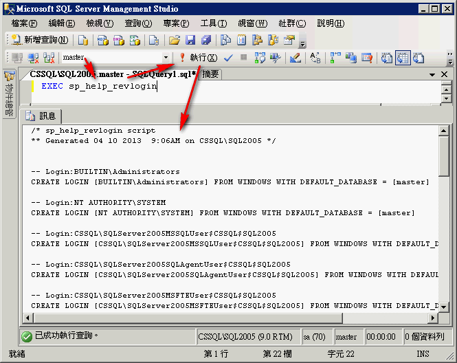 把此預儲程序產生的指令碼於目標SQL個體執行後,