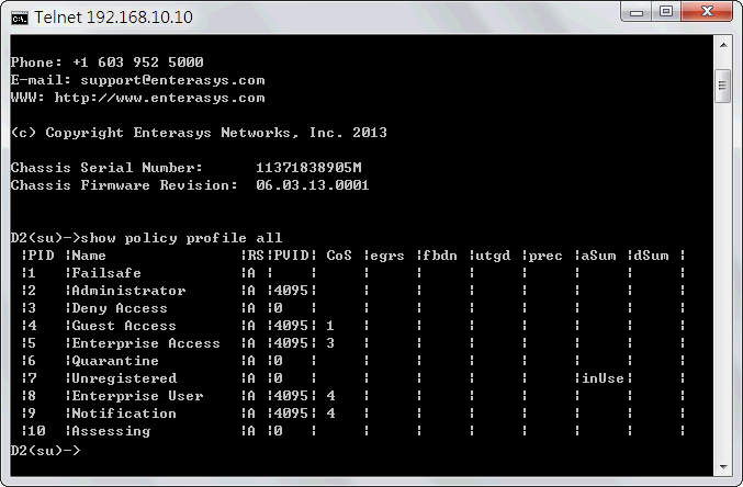 而Enterasys並沒有所謂的running-config與startup-config組態檔,組態在修改異動時,隨即產生效果;